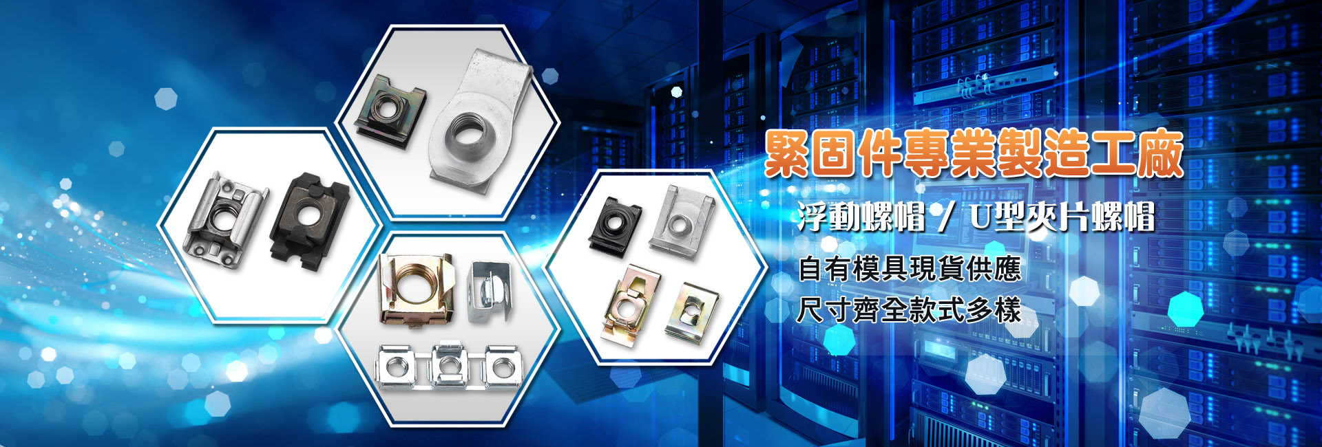 本著技術本位及多年專業經驗, 可迅速提供優良品質的產品. 自有模具現貨供應,尺寸齊全款式多樣,尤其在浮動螺帽、止動環、齒華司, 快速螺帽、波型華司及彈簧夾片, 彈片、彈簧梢、帽扣、扣環製造方面擁有豐富的經驗. 我們深信能提供客戶專業的技術及售後服務,亦歡迎特殊尺寸, 訂做製造。