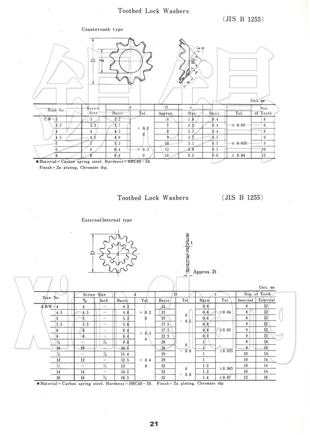 尺寸規格: 內齒華司 , 外齒華司 , 內齒重型華司 , 外齒重型華司 , 平華司 , 彈簧華司