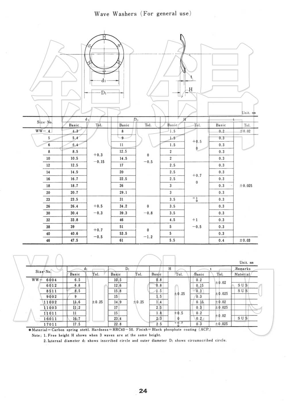 尺寸規格: 內齒華司 , 外齒華司 , 內齒重型華司 , 外齒重型華司 , 平華司 , 彈簧華司
