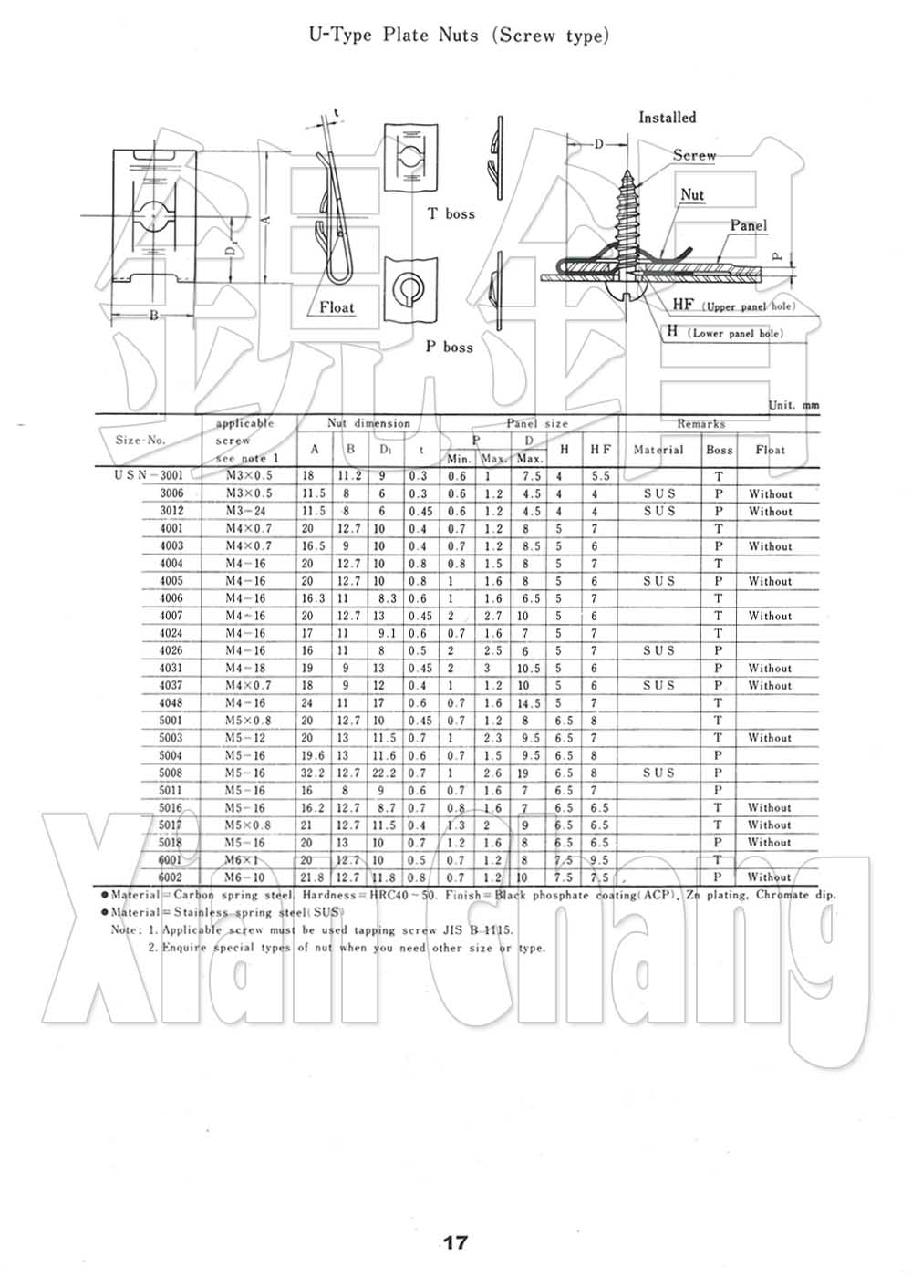 首頁 » 產品展示 » 夾片螺母 » U型彈片,夾片螺帽 (螺釘型)