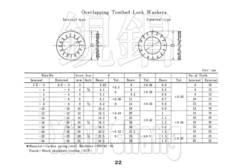 尺寸規格: 內齒華司 , 外齒華司 , 內齒重型華司 , 外齒重型華司 , 平華司 , 彈簧華司